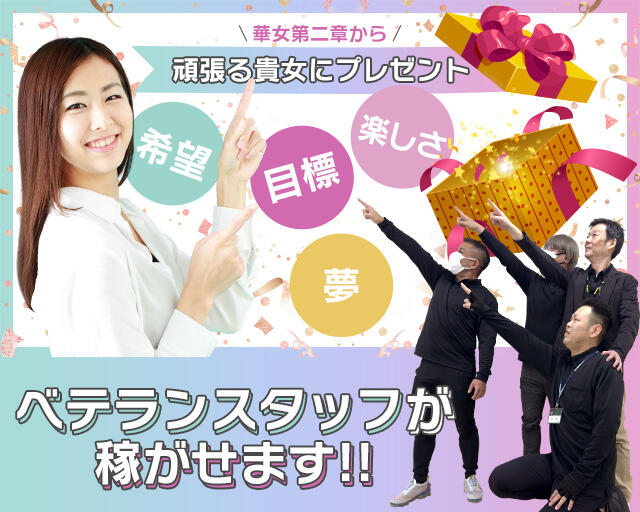 ご覧いただき有難うございます! YESグループ熊本 華女第二章店 です(^^)/ ただいま女の子を 大大大募集中です!! 大人の女性をコンセプトにした26歳~44歳までの 幅広いモデルさんが活躍できる店舗型ヘルスです。 熊本の中でもトップクラスの集客で 貴女の目標が…